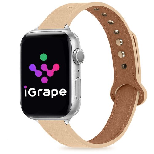 Кожаный ремешок pin and tuck для Apple Watch 42/44/45 мм, iGrape (Бежевый)