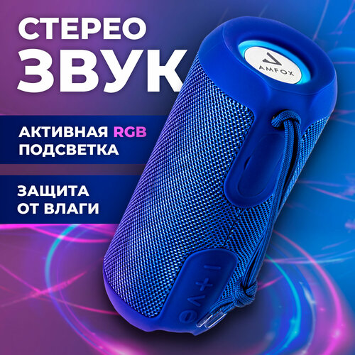 Портативная колонка bluetooth 5.0, AMFOX, ASP-777, 2 динамика по 5Вт, блютуз колонка беспроводная, колонка музыкальная как jbl акустика, синяя