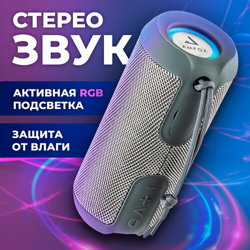 Портативная колонка bluetooth 5.0, AMFOX, ASP-777, 2 динамика по 5Вт, блютуз колонка беспроводная, колонка музыкальная как jbl акустика, серая