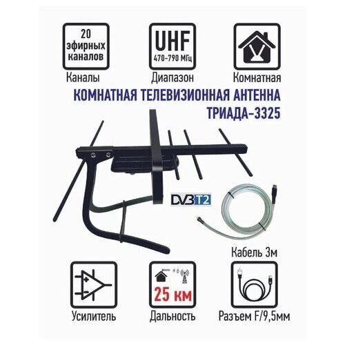 Комнатная цифровая активная направленная телевизионная антенна "Триада-3208"