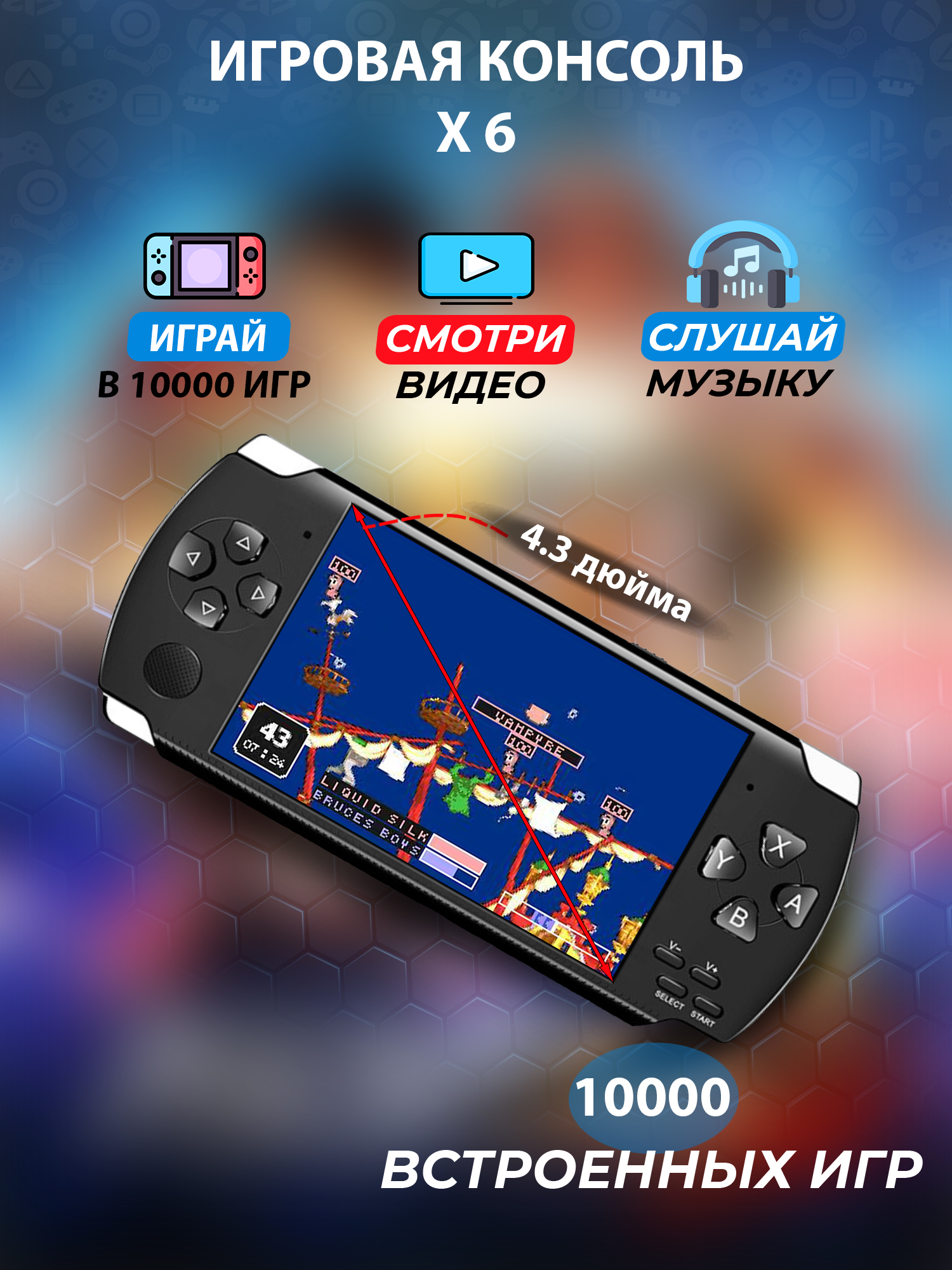 Портативная игровая консоль X6, 4,3 дюйма, 10 000 игр в 1, поддержка GameBoyAdvance, SEGA, NINTENDO CLASSIC MINI