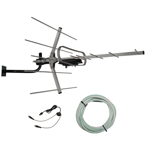 Наружная телевизионная антенна "Триада-3365USB" с инжектором питания DVB-T2, направленная активная цифровая, до 60 км, кабелем 10 метров и кронштейном