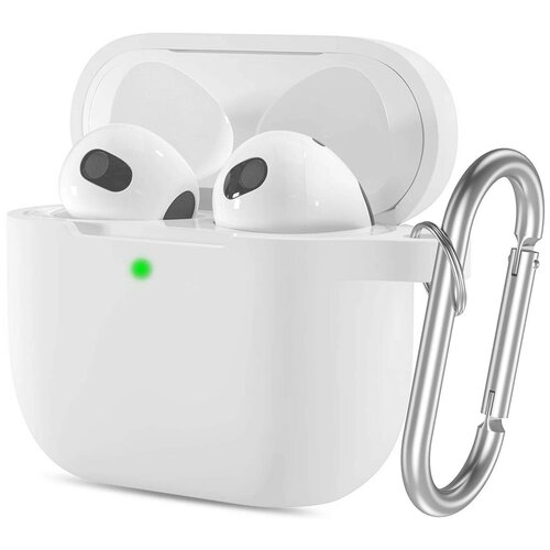 Ультратонкий чехол для Apple AirPods 3/ Силиконовый кейс с карабином для беспроводных наушников Эпл Аирподс 3 из гибкого силикона (White)