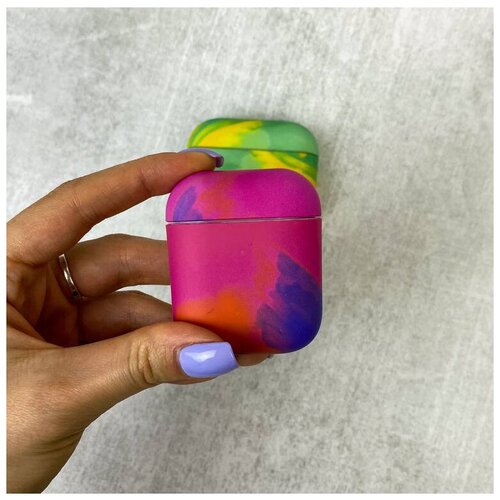 Ультратонкий чехол для Apple AirPods 1/2/ Ударопрочный силиконовый кейс для беспроводных наушников Эпл Аирподс 1/2 из силикона Акварель (Розовый)