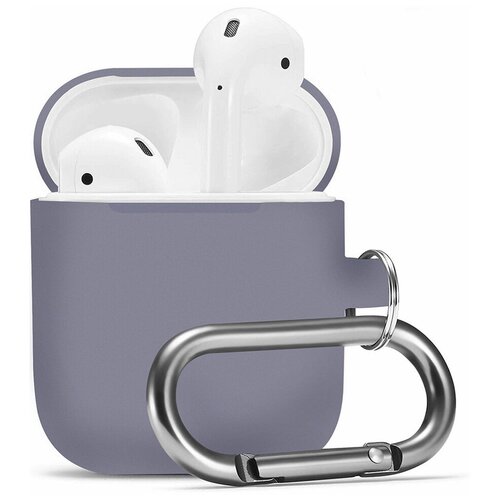 Силиконовый чехол для Apple AirPods 1 и AirPods 2 с карабином / Кейс для Эпл Аирподс 1 и Аирподс 2 с держателем (Lavender Gray)