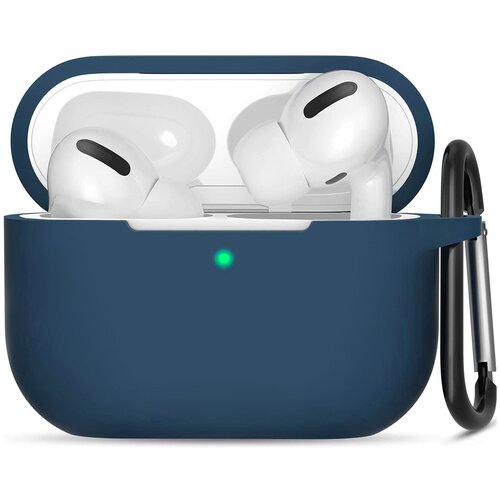 Ультратонкий чехол для Apple AirPods Pro/ Силиконовый кейс с карабином для беспроводных наушников Эпл Аирподс Про из гибкого силикона (Midnight blue)