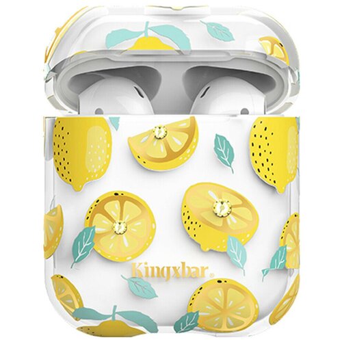 Чехол пластиковый Kingxbar для Airpods 2 (1), прозрачный, лимоны, со шнурком