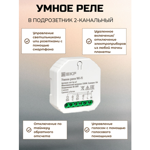 Умное реле в подрозетник 2-канальное Wi-Fi EKF Connect
