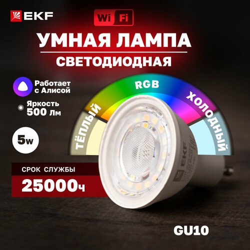Умная лампа GU10 EKF Connect 5W WIFI RGBW