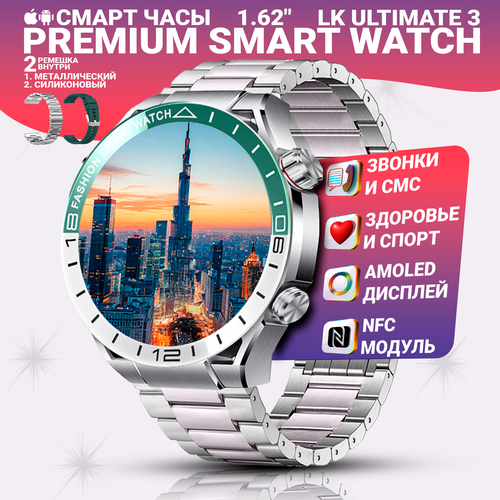 Умные смарт часы LK ULTIMATE 3, умные часы PREMIUM Series Smart Watch 1.62", 46MM, iOS, Android, 2 ремешка, Серебристый