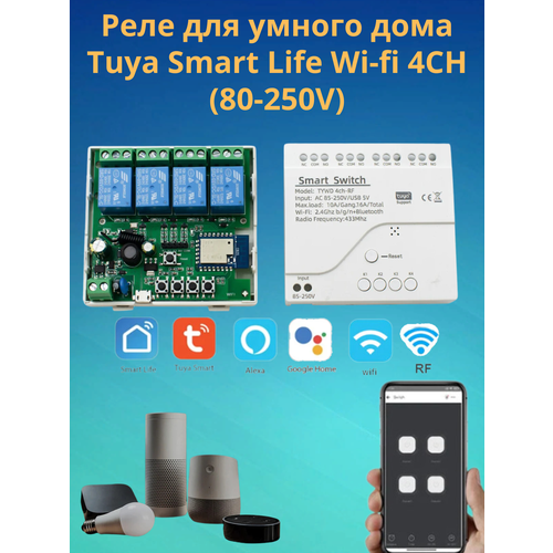 Реле для умного дома Tuya Smart Life Wi-fi 4 канала (80-250V) (Д)
