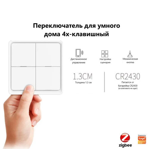Переключатель Tuya ZigBee для умного дома (4 клавиши, 12 сцен) Smart Life (Д)