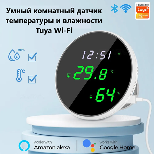 Датчик температуры и влажности Tuya Wi-Fi с подсветкой и датчиком света (питание USB) (Д)