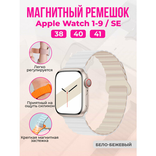 Магнитный силиконовый ремешок для Apple Watch 1-9 / SE (38/40/41 мм), бело-бежевый
