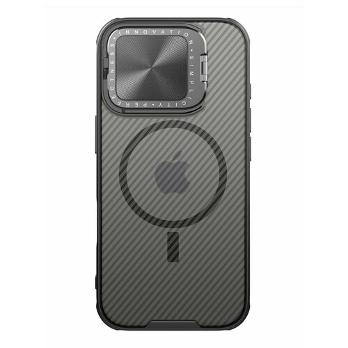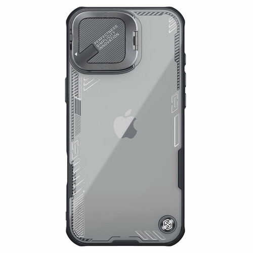 Чехол прозрачный серого цвета от Nillkin с металлической откидной крышкой для камеры на iPhone 16 Pro, серия Iceblade Prop Case