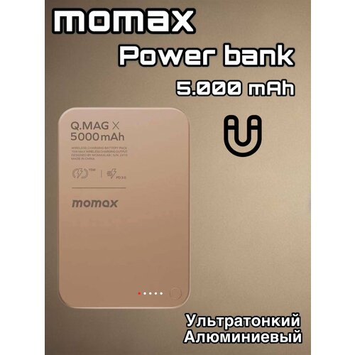 Внешний магнитный аккумулятор с беспроводной зарядкой Momax Q.MAG X Ultra Slim 8.3 mm, 5000 mAh, Qi 15W / PD20W, Desert Titanium