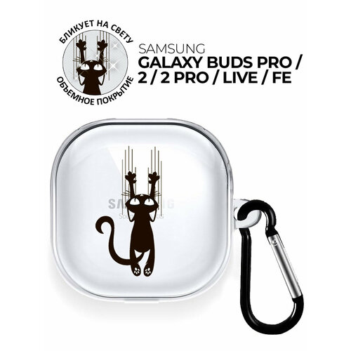 Чехол на Samsung Galaxy Buds Pro / 2 / 2 Pro / Live / FE с принтом "Кошечка царапка" прозрачный