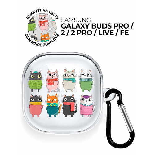 Чехол на Samsung Galaxy Buds Pro / 2 / 2 Pro / Live / FE с принтом "Кошачий калейдоскоп" прозрачный