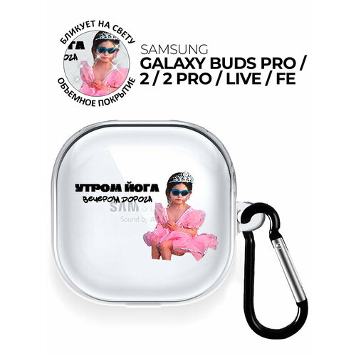 Чехол на Samsung Galaxy Buds Pro / 2 / 2 Pro / Live / FE с принтом "Утренняя йога" прозрачный