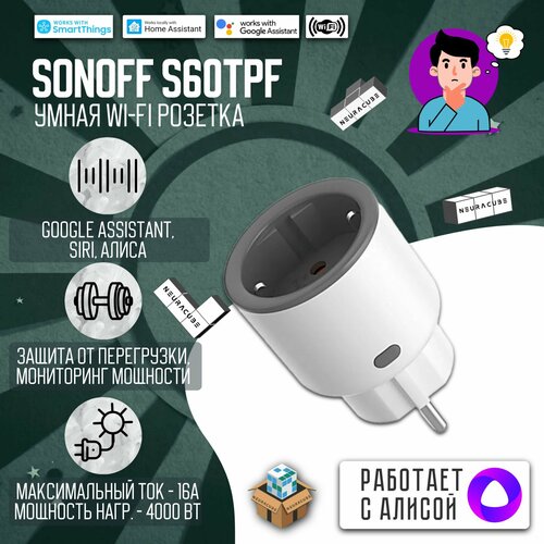 Умная WiFi розетка Sonoff S60TPF, 16А/4000Вт (Работает с Яндекс Алисой)