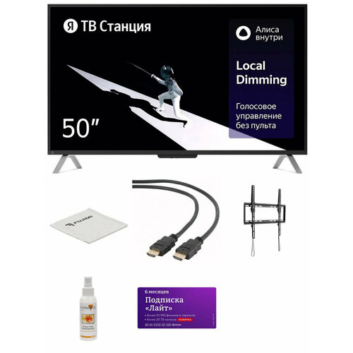 Яндекс ТВ Станция Бейсик новый телевизор с Алисой, 50" 4K UHD, LED