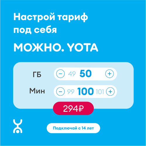 SIM-карта YOTA Тариф «Всегда на связи»: 2000 минут, 50 гб интернета.