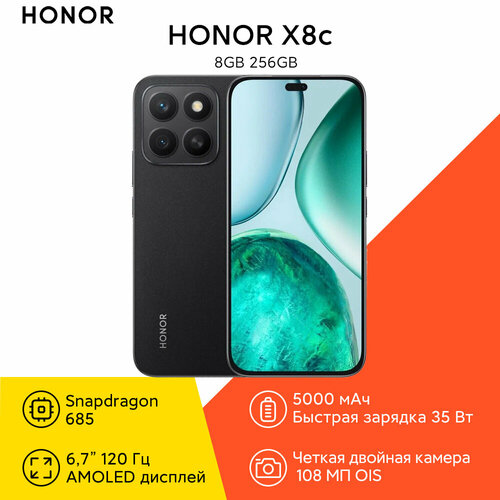 Смартфон HONOR X8c, 8 ГБ/256ГБ, 108МП OIS, экран 6,7" AMOLED, черное, EAC (Ростест)