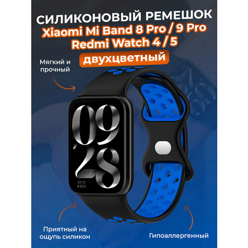 Двухцветный силиконовый ремешок для Xiaomi Mi Band 8 Pro/9 Pro и Redmi Watch 4/5, черно-синий