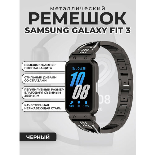 Металлический ремешок с бампером для Samsung Galaxy Fit 3, со стразами