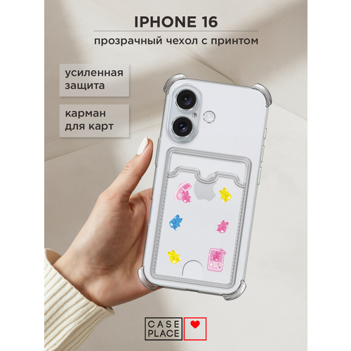 Чехол на Apple iPhone 16 (Айфон 16) с картой и принтом Мармеладные мишки