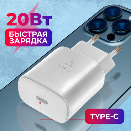 Сетевая зарядка для телефона AMFOX AH-20 универсальная с разъемом Type-C, 20 Вт, зарядное устройство, блок питания адаптер айфона