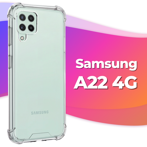 Противоударный силиконовый чехол Armor для Samsung Galaxy A22 4G / Бампер для телефона Самсунг Галакси А22 4Г с усиленными углами (Прозрачный)