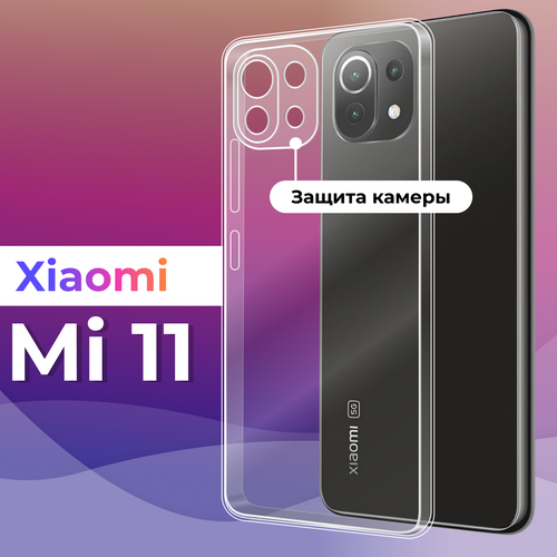 Тонкий силиконовый чехол на Xiaomi Mi 11 / Чехол для Сяоми Ми 11 с защитой камеры (Прозрачный)