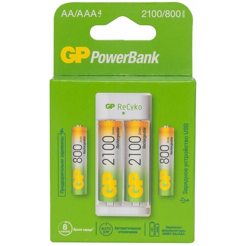 GP Зарядное устройство GP с аккумуляторами, AA 2000 mAh 2 шт. + AAA 800 mAh 2 шт, E211210/80-2CRB4, E21121080-2CRB4