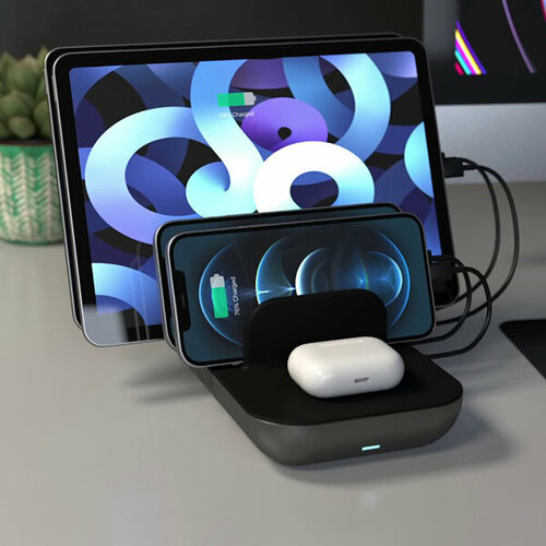 Satechi Док-станция c беспроводным ЗУ Satechi Dock5 Multi-Device Charging Station PD 3A/2USB/2USB-C тёмно-серая ST-WCS5PM