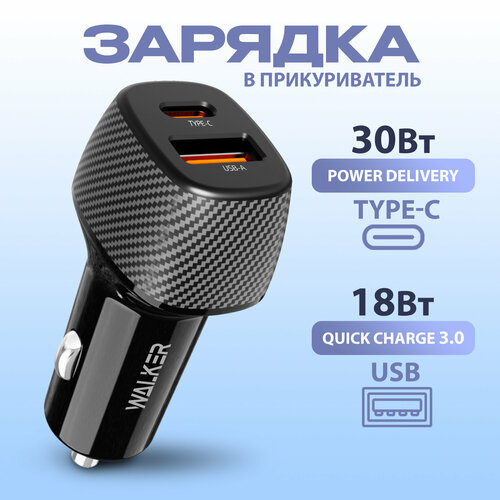 Автомобильное зарядное устройство для телефона, WALKER, WCR-35, 45Вт, USB/Type-C, быстрая зарядка QC3.0/PD, в прикуриватель, адаптер в машину