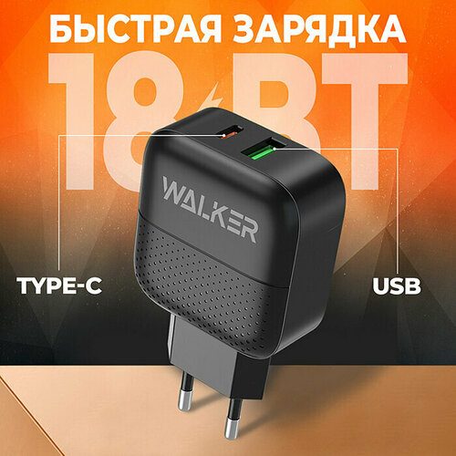 СЗУ USB-С 3,0А WALKER WH-37 18W (USB, TYPE-C, Quick Charge 3.0, Power Delivery) черный