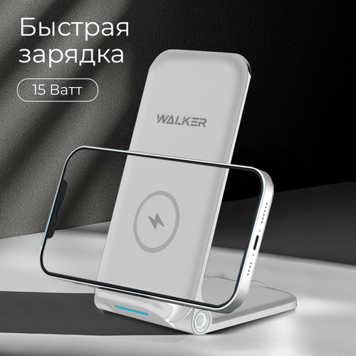 Беспроводная зарядка для телефона, WALKER, WHH-52, БЗУ, зарядное устройство iphone, андроид, самсунг, xiaomi, зарядник айфон, зарядная станция, белая