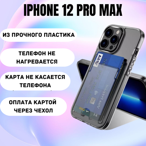 Чехол на айфон 12 Pro Max противоударный с карманом для карт / пластик + TPU