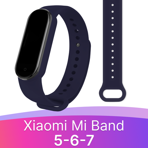 Силиконовый ремешок для Xiaomi Mi Band 5, 6 и 7 / Темно-синий