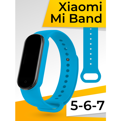 Силиконовый ремешок для умных часов Xiaomi Mi Band 5, 6, 7 / Сменный спортивный браслет для фитнес трекера Сяоми Ми Бэнд 5, 6, 7 / Лазурный
