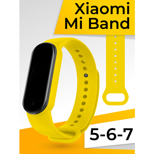 Силиконовый ремешок для умных часов Xiaomi Mi Band 5, 6, 7 / Сменный спортивный браслет для фитнес трекера Сяоми Ми Бэнд 5, 6, 7 / Желтый