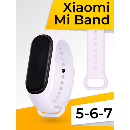 Силиконовый ремешок для умных часов Xiaomi Mi Band 5, 6, 7 / Сменный спортивный браслет для фитнес трекера Сяоми Ми Бэнд 5, 6, 7 / Белый