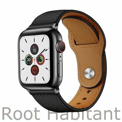 Кожаный ремешок для Apple Watch 3 4 5 6 7 8 9 SE Ultra, в корпусах 38, 40, 41, 42 серия 10. Черный / Black
