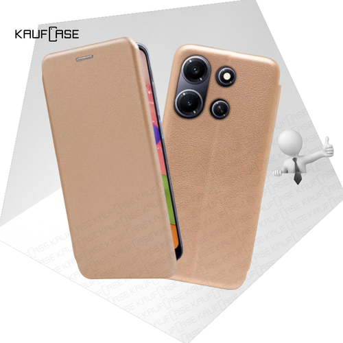 Чехол книжка для телефона Infinix Note 30i (X6716) (6.66"), золото. Текстура под кожу