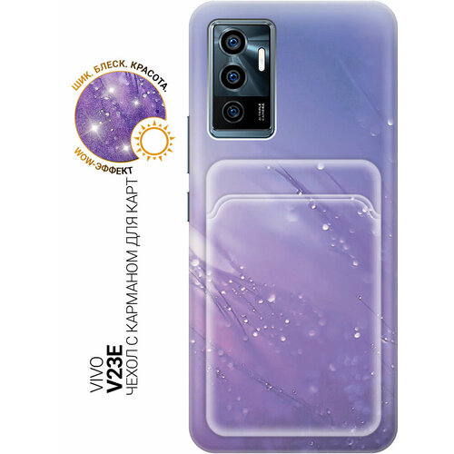 Силиконовый чехол на Vivo V23e / Виво В23е с рисунком "Капли на синей траве" и карманом для карт