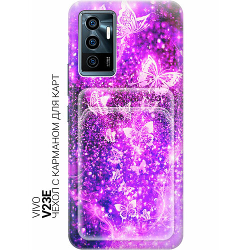 Силиконовый чехол на Vivo V23e / Виво В23е с рисунком "Фиолетовые бабочки" и карманом для карт
