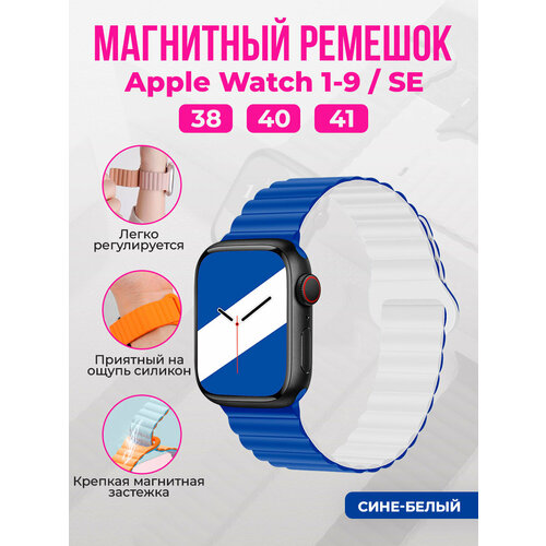 Магнитный силиконовый ремешок для Apple Watch 1-9 / SE / SE 3 (38/40/41 мм), 11, S10/S11, 42 мм, цвет синий с белым