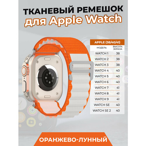Тканевый ремешок для Apple Watch 1-9 / SE (38/40/41 мм), оранжево-лунный
