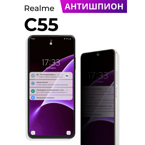 Защитное стекло Антишпион на Realme C67 / Realme C55, противоударное стекло для Реалми С55, Реалми С67
